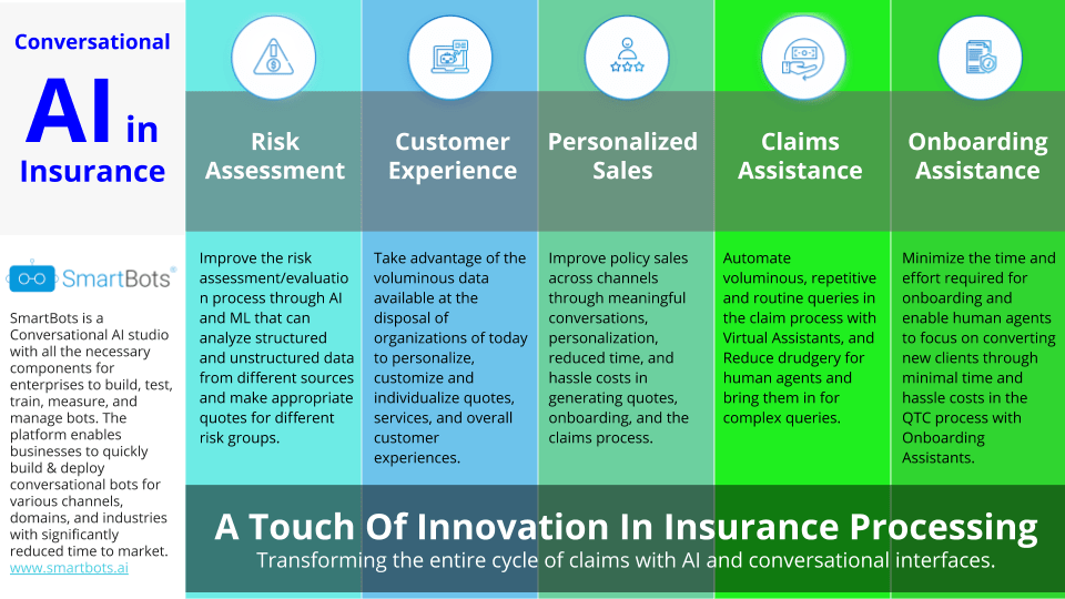 High-Quality and Consistent Customer Experiences: Dynamic and meaningful conversations in natural language through conversational bots have enabled insurance organizations to provide high-quality, seamless, and consistent customer experiences by lessening the wait time and frustration levels of the clients. They have enabled clients to engage in self-service, understand insurance jargon better, and uncomplicate the claims process. For instance, the provisions for car insurance customers to file claims through the mobile app by clicking pictures and submitting the claim instantly has helped reduce the time, money, and hassle costs for the clients.